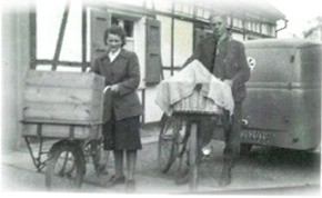 1945 kam Karl Stöcker Junior aus dem Krieg, übernahm den Betrieb und führte die Bäckerei mit seiner Frau Hildegard. | Nachdem Sohn Karl-Jürgen Stöcker 1957 die Schule mit der Mittleren Reife abgeschlossen hatte, sollte er eigentlich einen anderen Beruf ergreifen, begann dann aber doch eine Lehre im Bäckerhandwerk. |